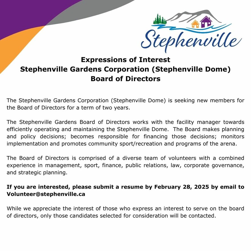 • Expressions of Interest Stephenville Gardens Corporation (Stephenville Dome) Board of Directors