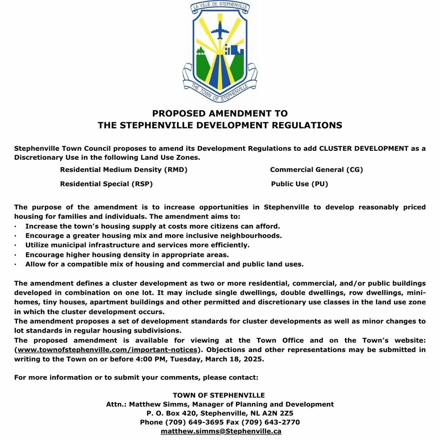 Proposed Amendment to the Stephenville Development Regulations Cluster Development